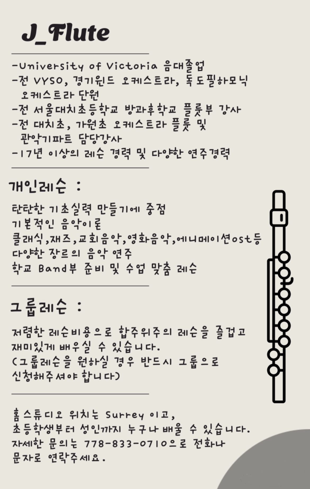 ♪♪♪♪♪ Flute Lesson 합니다 ♪♪♪♪♪