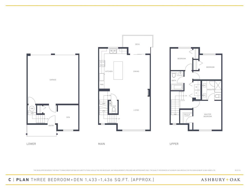 여유로운 3Bed + DEN, 2.5Bath, 약 1,433sqft의 사용 면적