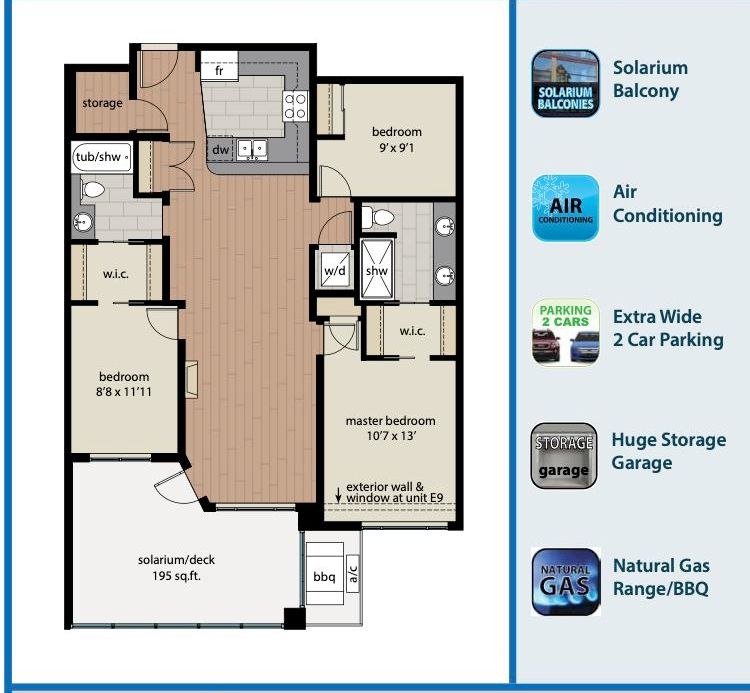 (1143 sq.ft. + Solarium/deck 195 sq.ft.)