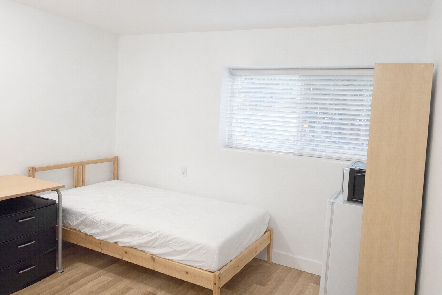 방에는 싱글 침대, 붙박이 옷장, 책상,개인 전자레인지,미니냉장고 개인 화장실이 준비 되어있습니다.
