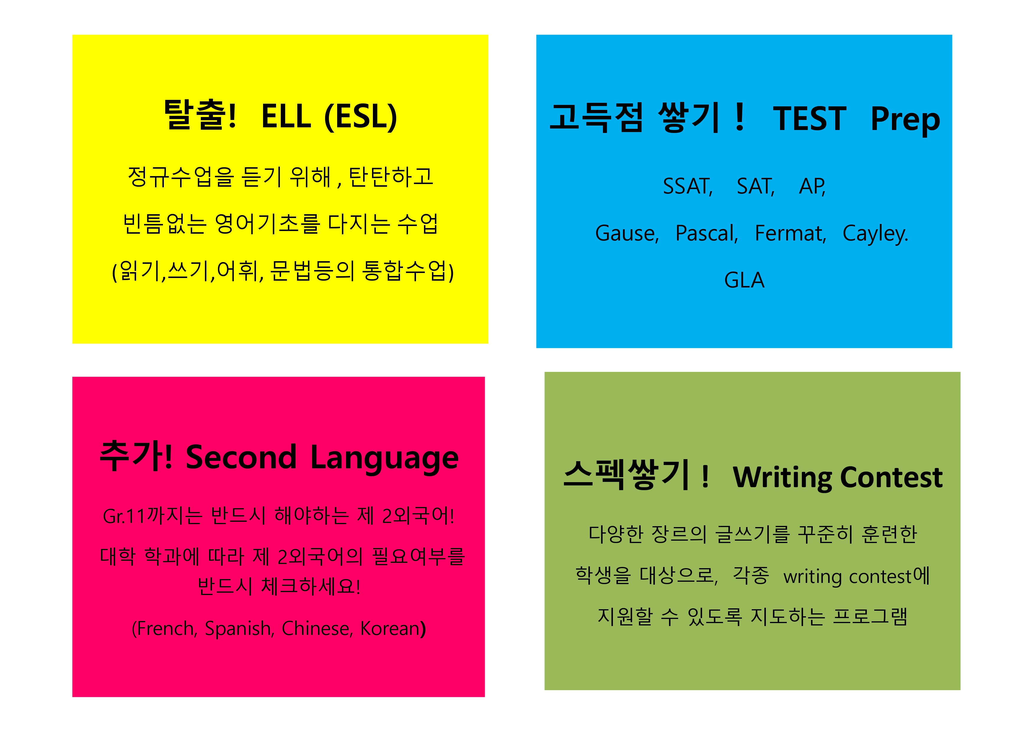 영어 (Elem/ Sec) : 리딩, 라이팅, 어휘, 문법