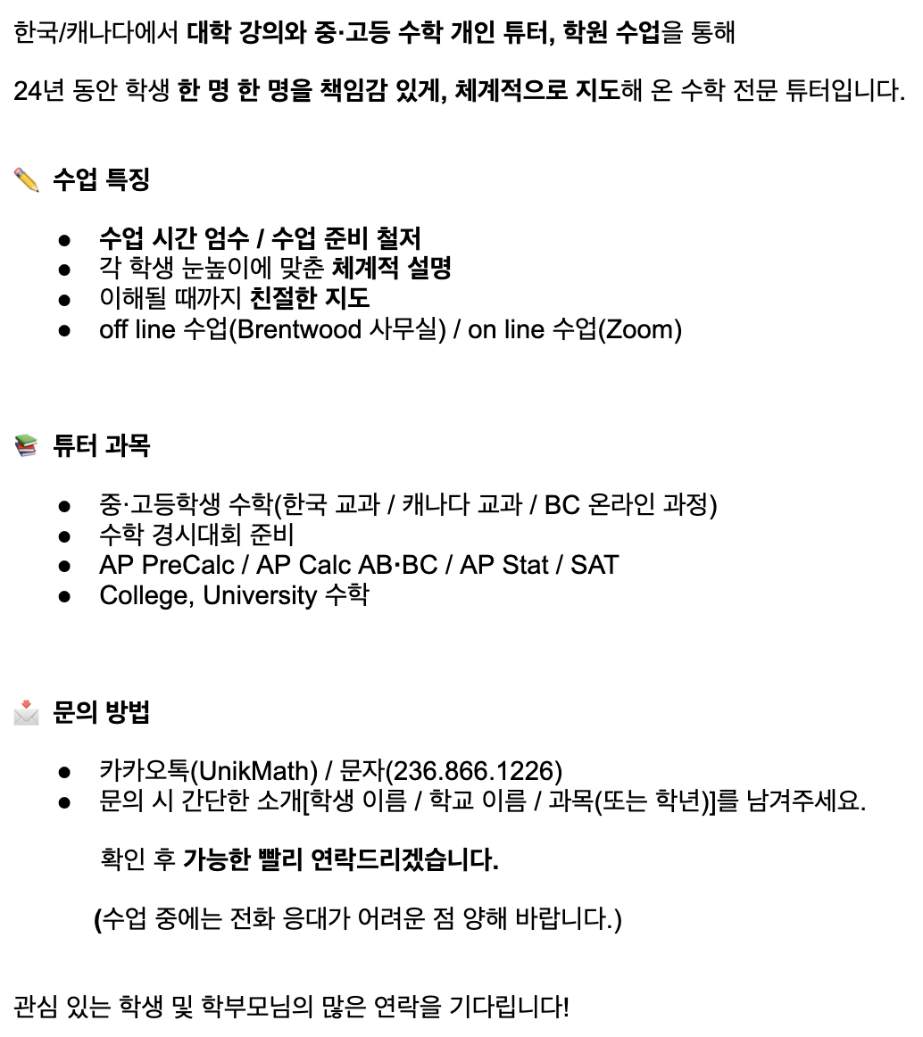 ✦[수학전문] 대학 강의 14년, 중·고등 수학 튜터 24년✦