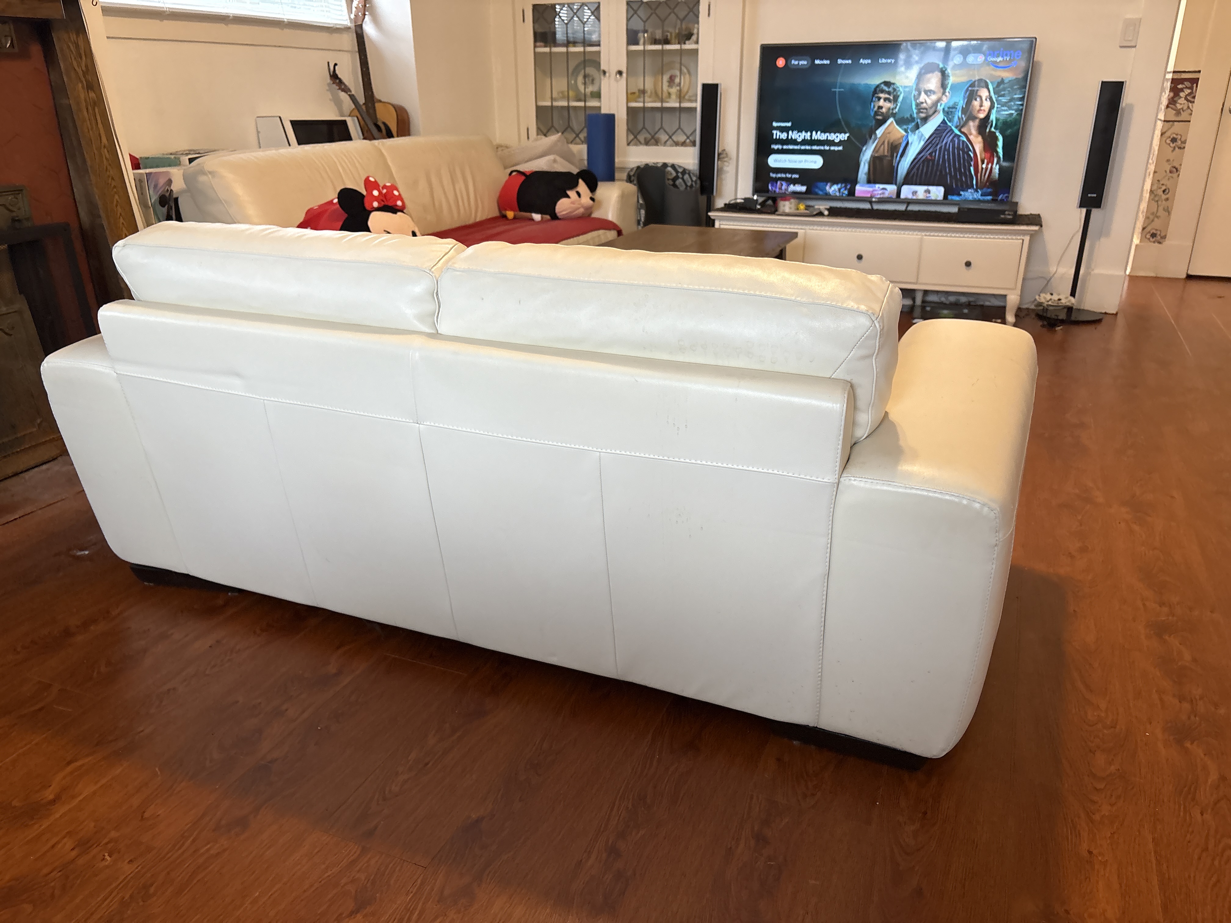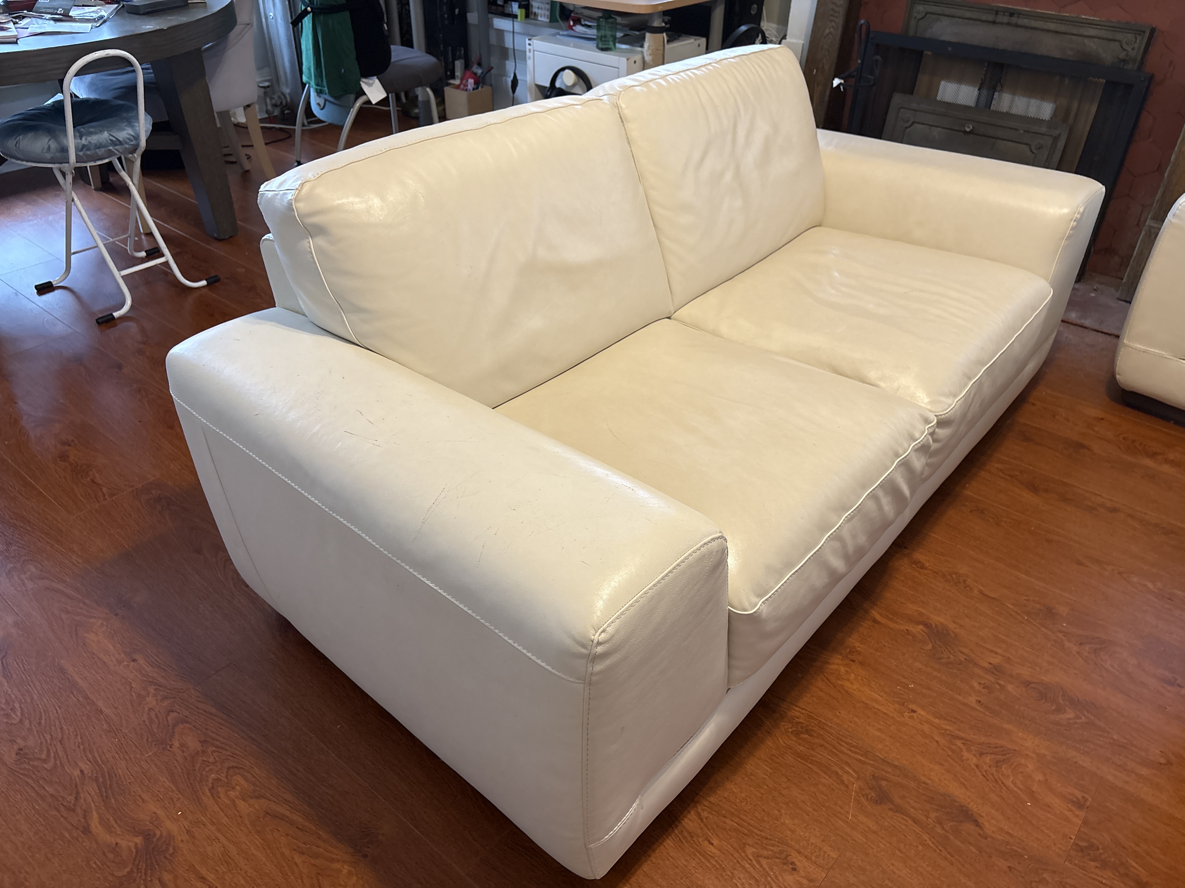 크림색 가죽 2인용 소파