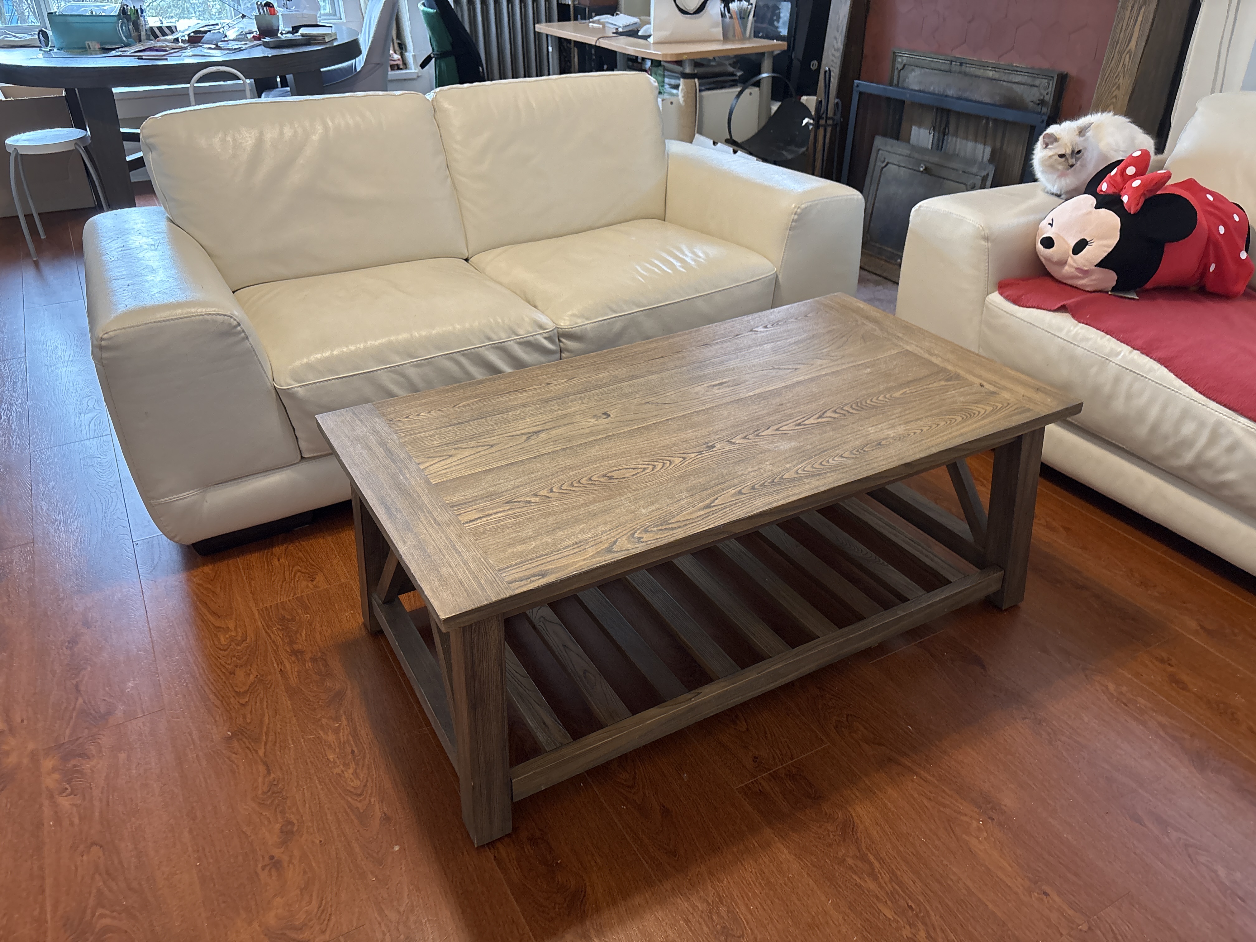 아이보리 가죽 2~3인 소파 150불