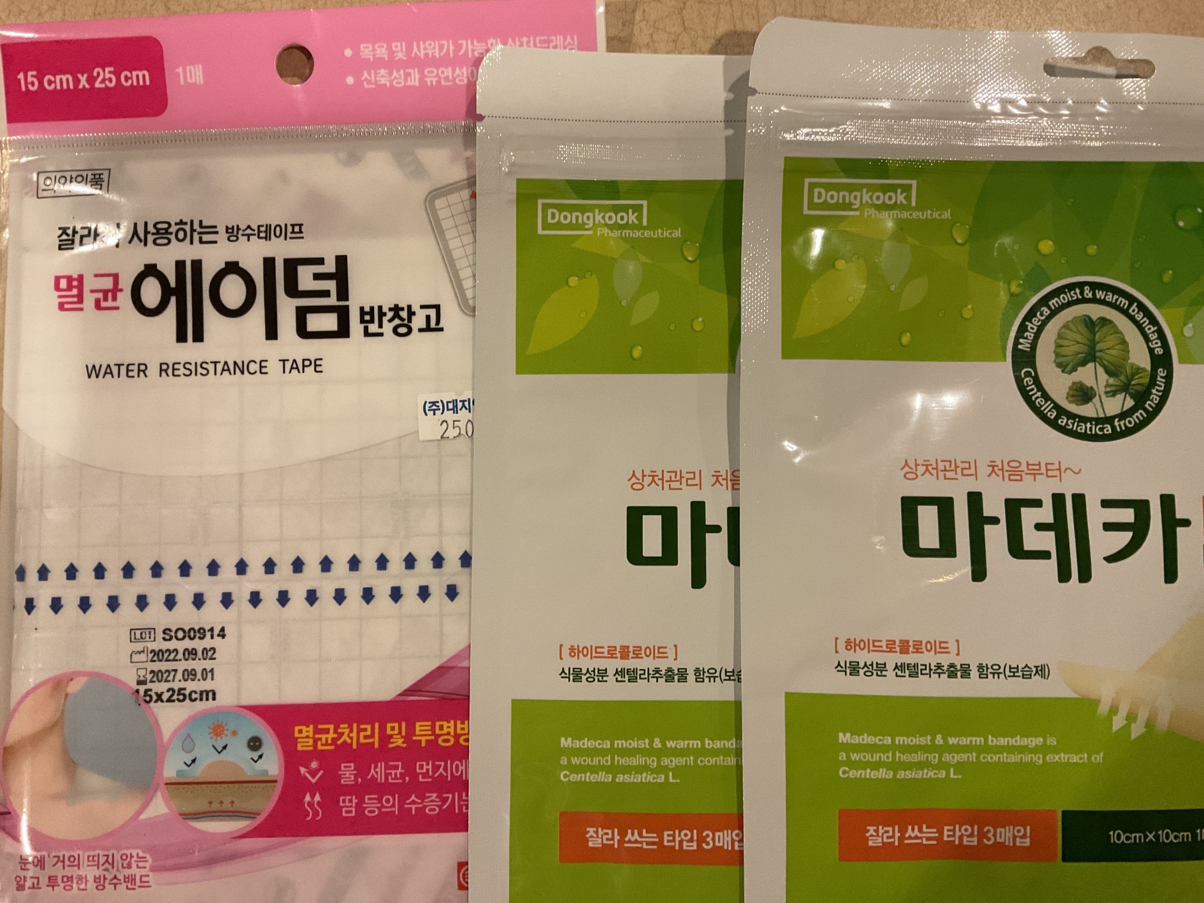 2. 잘라 사용하는 마데카 습윤밴드 2개 + 멸균 에이덤 반창고  $20