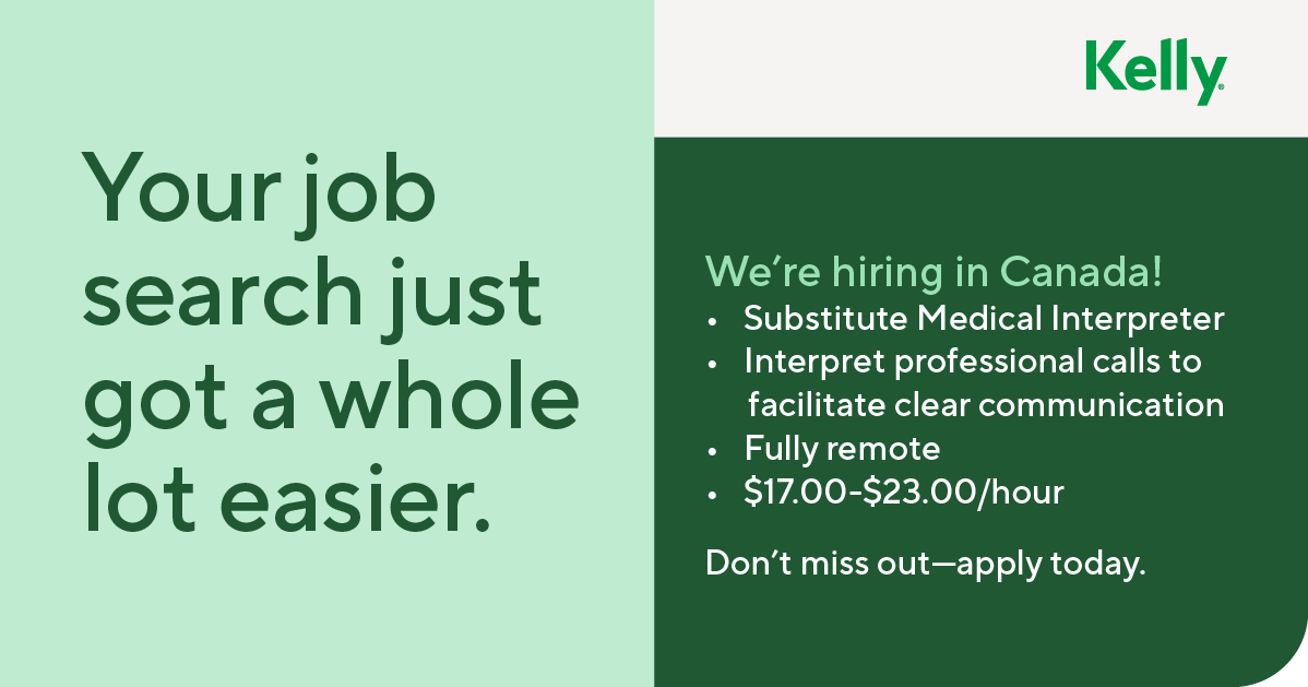 What We Offer: - Ongoing paid training to strengthen your interpretation skills and support your professional development - Weekly pay for consistent and reliable income - A supportive team that values your work and is here to help you succeed - Meaningful work that helps people access critical services and support - A company that cares, Kelly Services is committed to inclusion, growth, and supporting a healthy work-life balance
