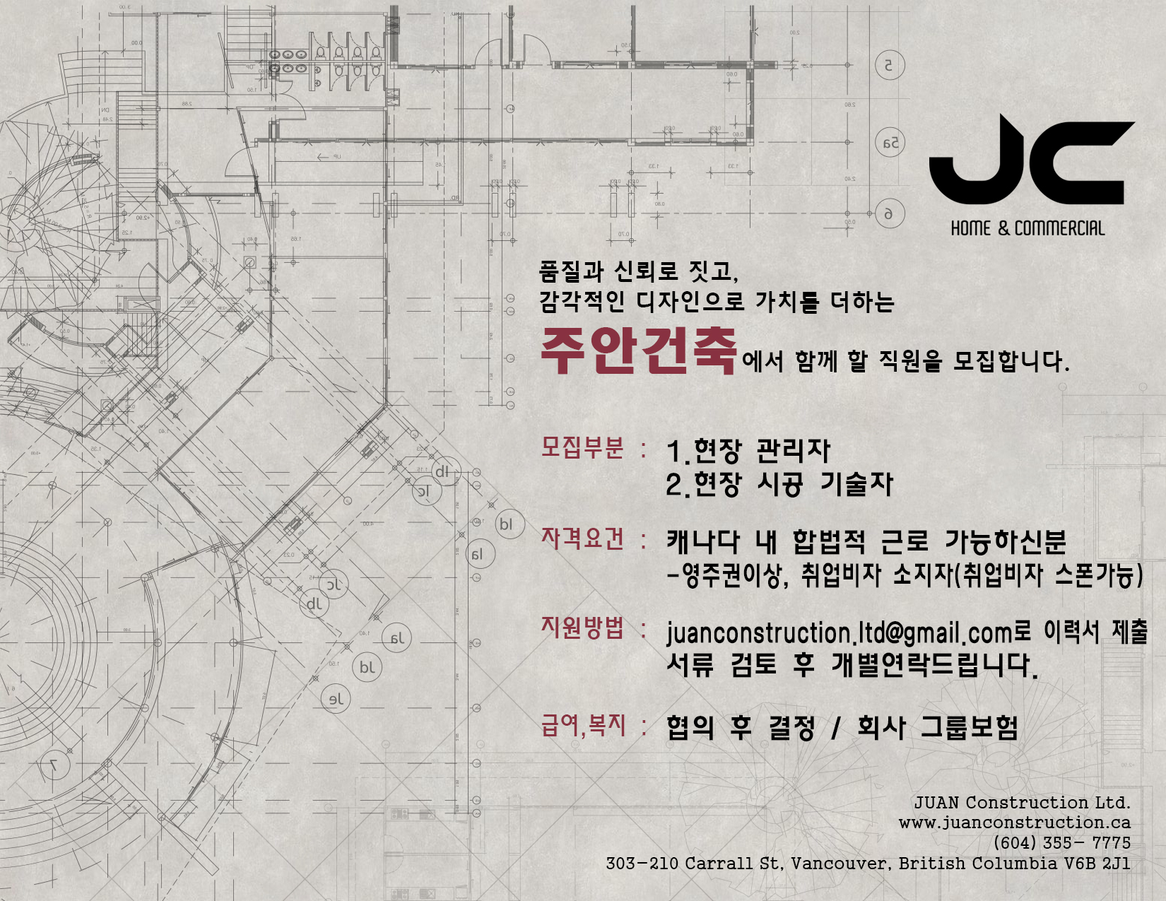 주안건축 직원 모집합니다.