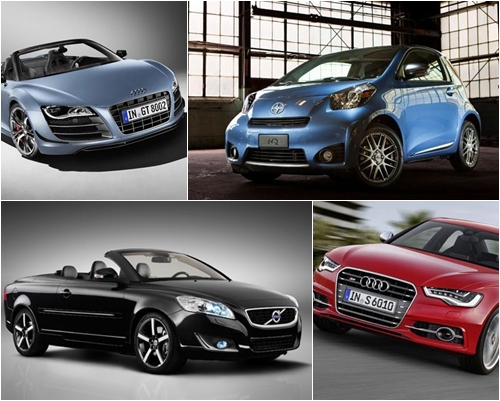 - ▲ (왼쪽부터 시계방향)아우디 R8 스파이더, Scion IQ, 아우디 S6, 볼보 C70