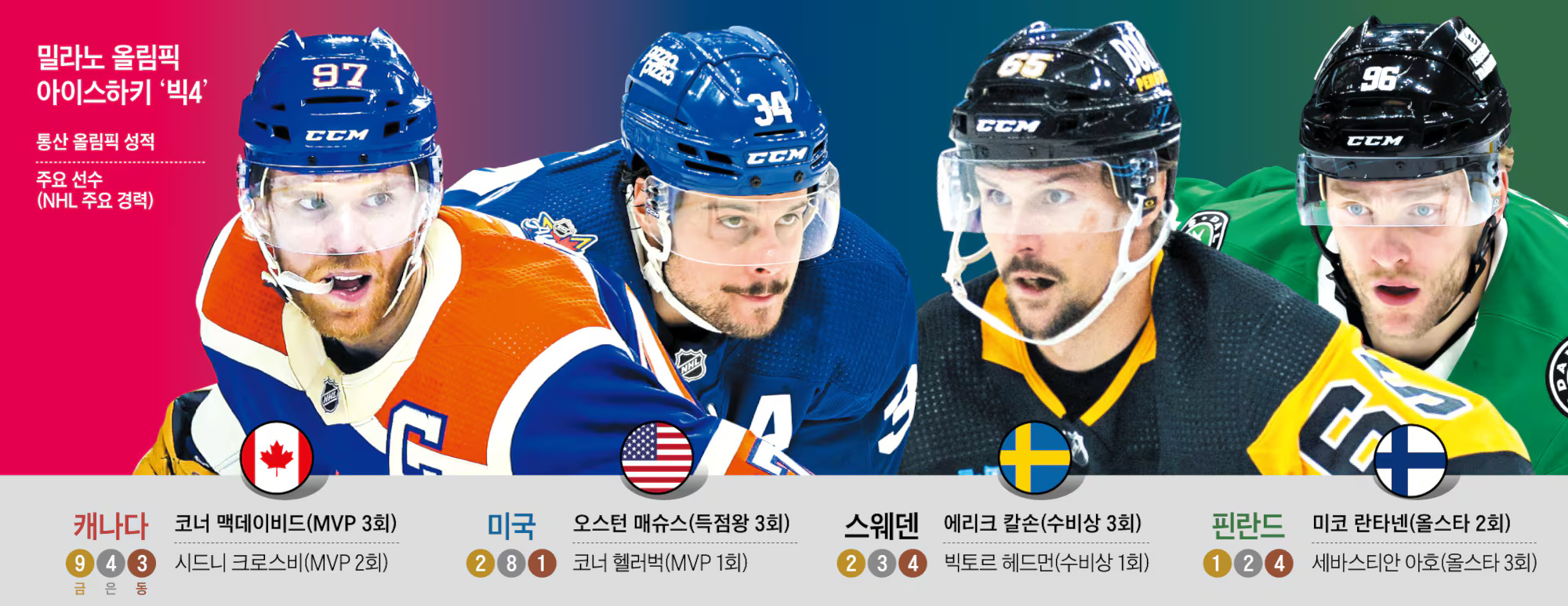 [차오! 밀라노] 올림픽 아이스하키 ‘빅4’ 분석