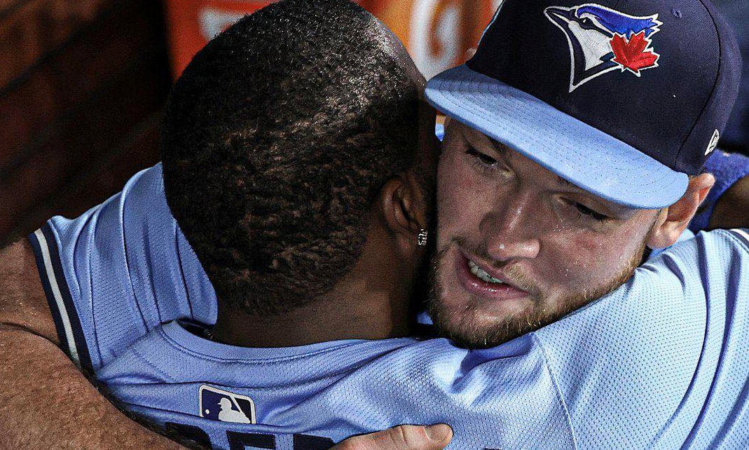 ▲토론토 블루제이스의 신인 투수 트레이 예새비지와 블라디미르 게레로 주니어가 서로를 끌어안고 있다 / Toronto Blue Jays Facebook토론토 블루제이스가 22세 루키 투수 트레이 예새비지의...