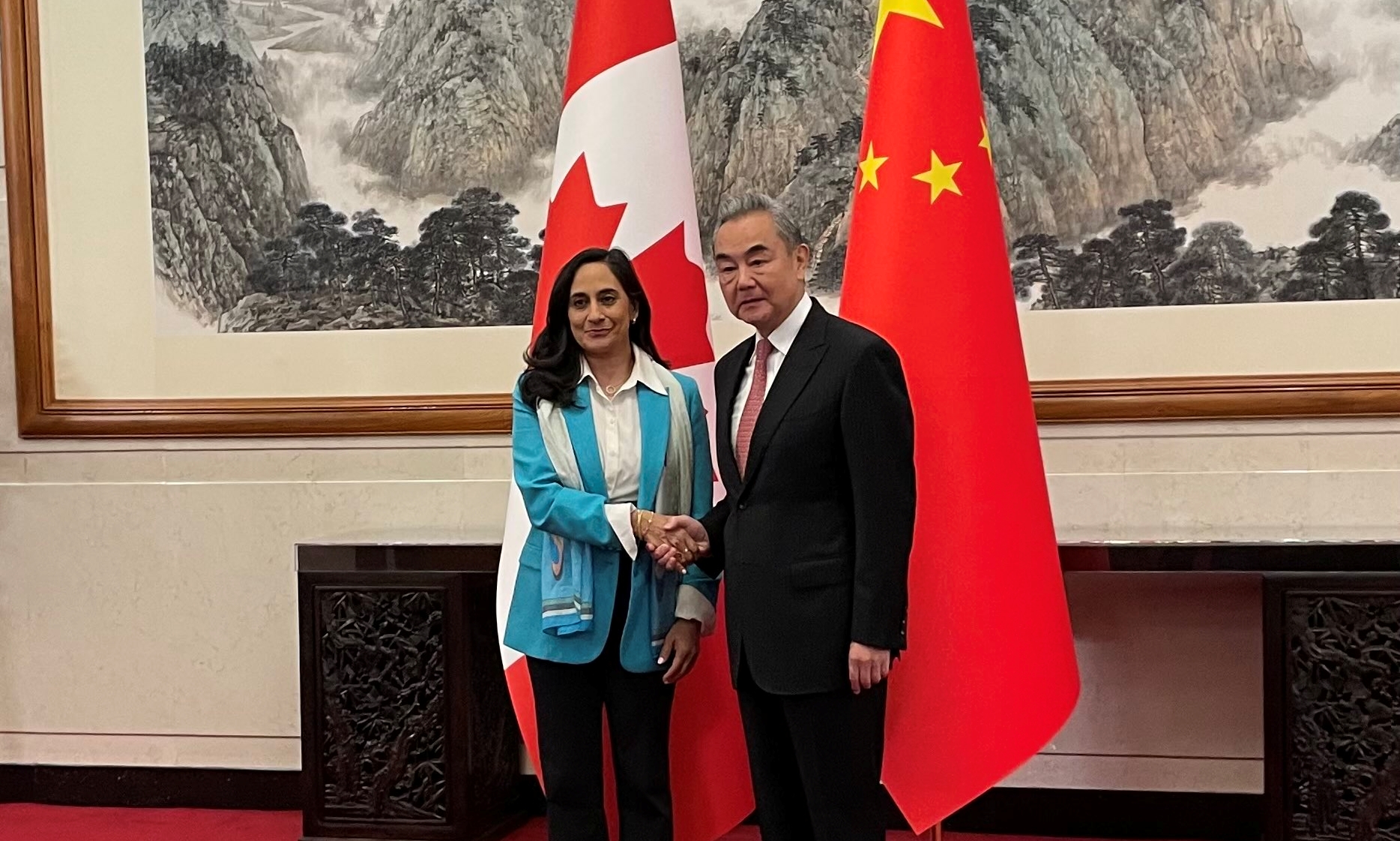 ▲지난 17일 아니타 아난드 외무장관이 중국을 방문해 왕이 중국 외교부장과 악수하고 있다. / Anita Anand X 캐나다가 미국과의 무역 갈등을 계기로 아시아 국가들과의 협력 강화에 나서고...