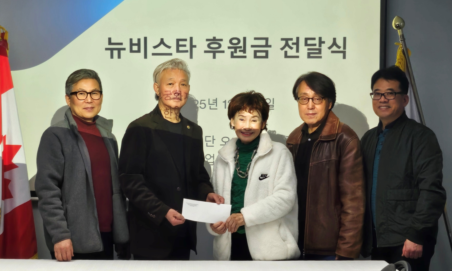 ▲한용 BC한인실업인협회장(왼쪽에서 두 번째)이 오유순 무궁화재단 이사장(왼쪽에서 세 번째)에 뉴비스타 한인 양로원 후원금을 전달하고 있다. / 실협 BC한인실업인협회(회장 한용, 이하...