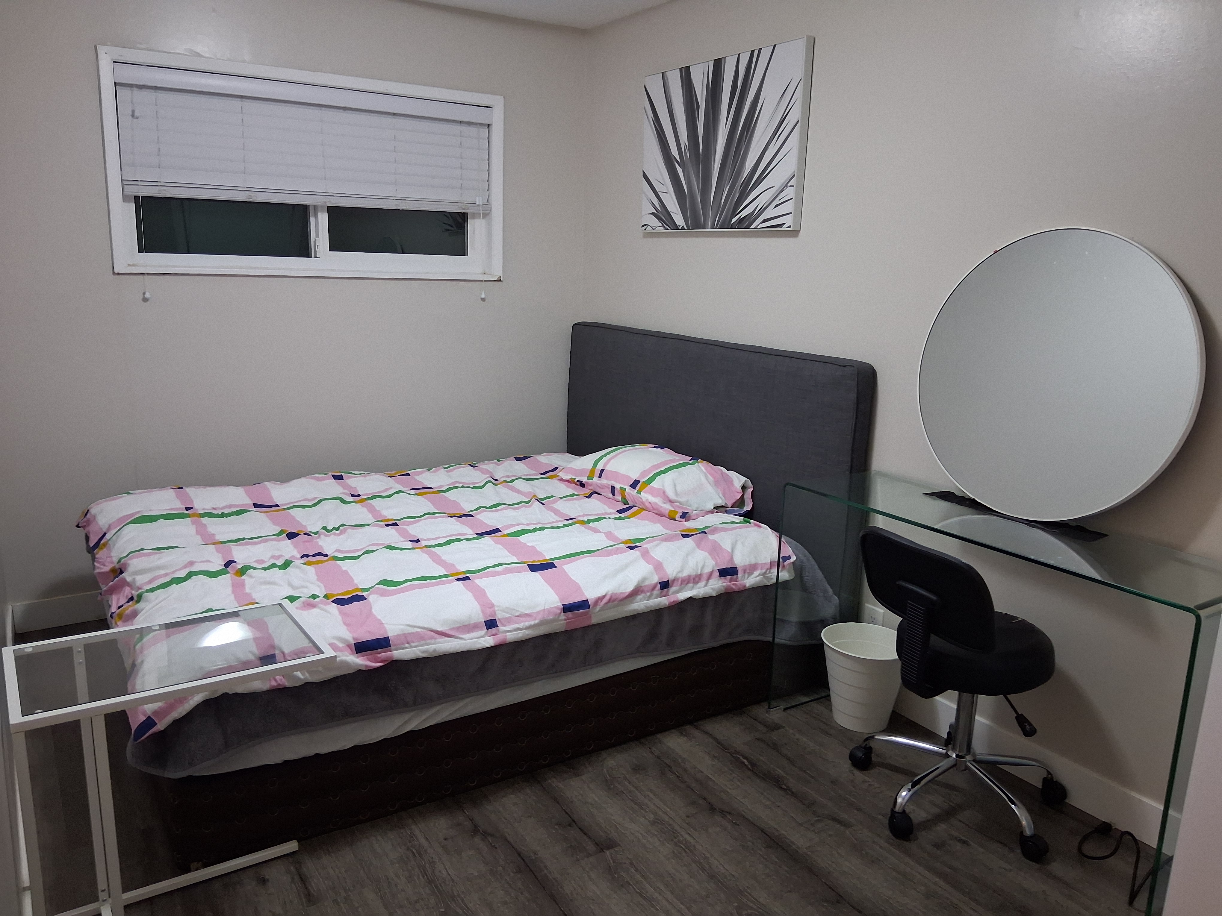 하우스 1층 길포드 몰과 버스로 5분거리 써리 센츄리역 버스로 10분 거리. 도보로 10분이내 맥도날드와 슈퍼스토어 갈 수 있어요 700에 유틸리티 포함한 가격이고요 주방기구와 세탁기도 쓸 수 있습니다 쓰실 방안에 개인냉장고도 있습니다. 관심있으신 분은 이메일로 연락주세요 사진 보내드리겠습니다.