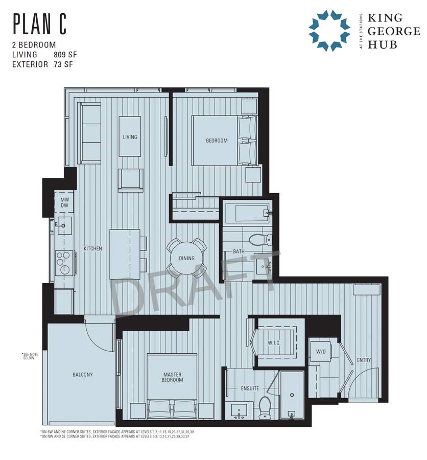 밝고 탁 트인 코너 유닛으로, 멋진 도시 전망을 자랑하며 Surrey Central 및 King George 스카이트레인 역에서 도보 거리에 위치해 있습니다.