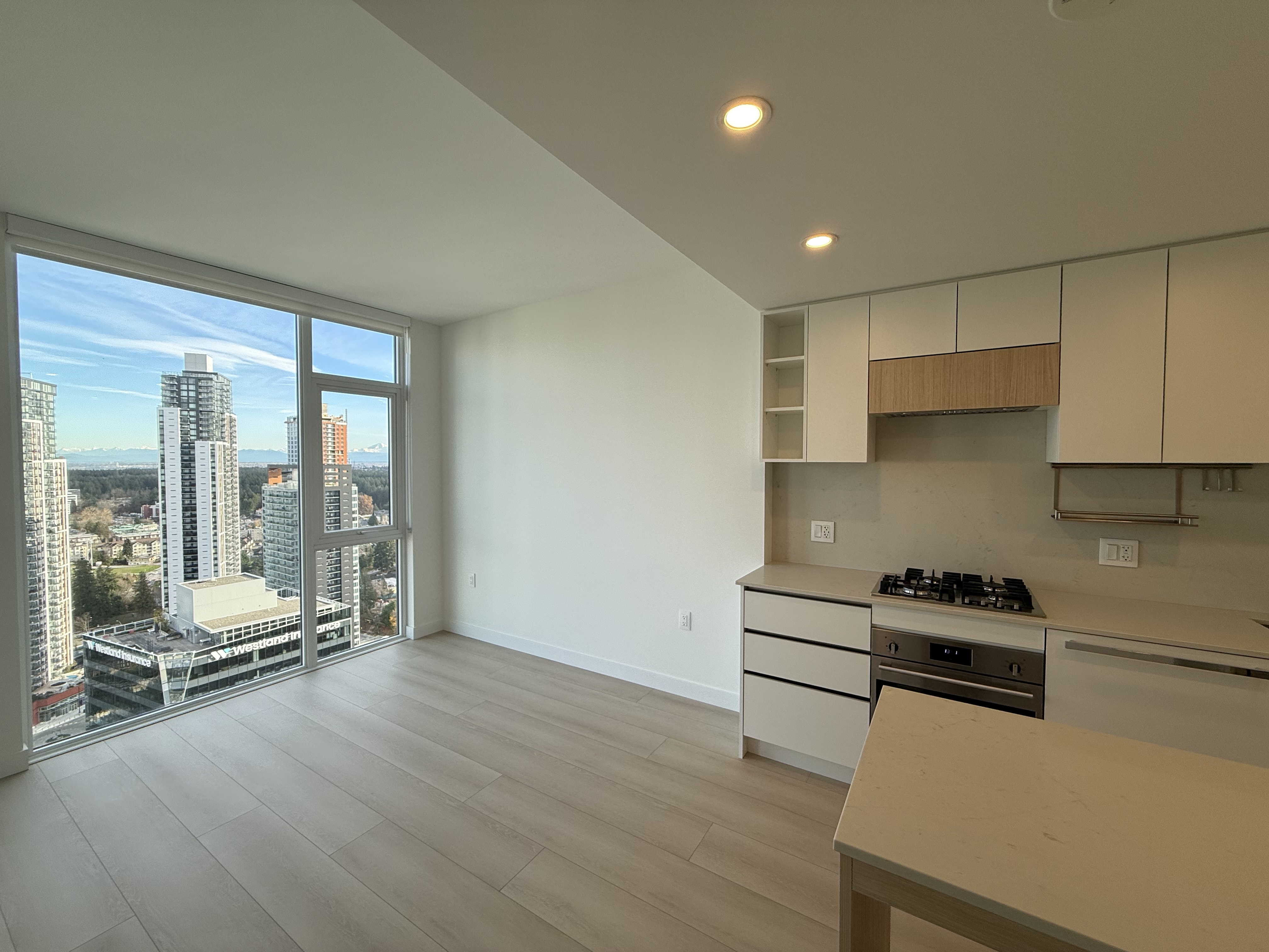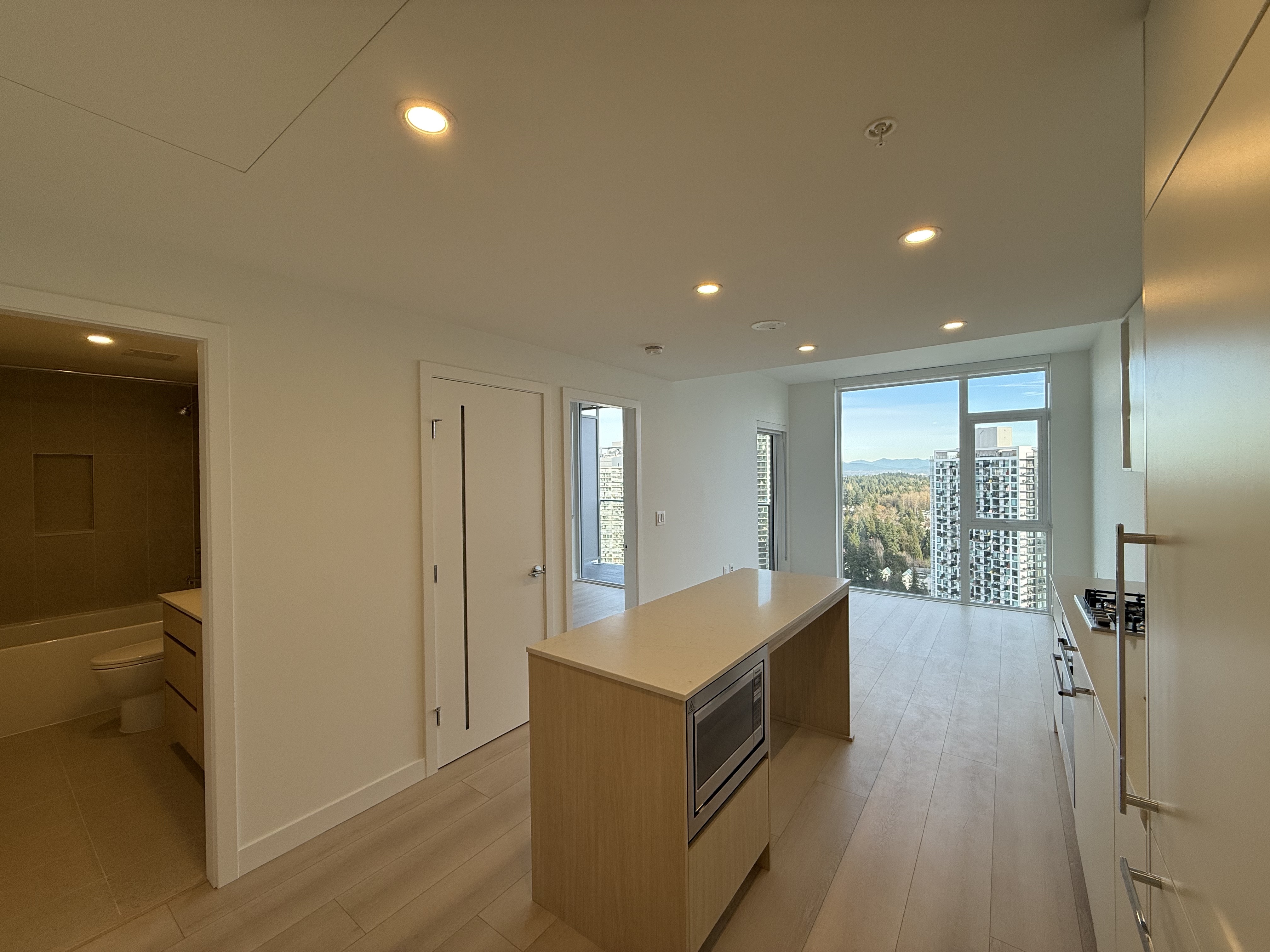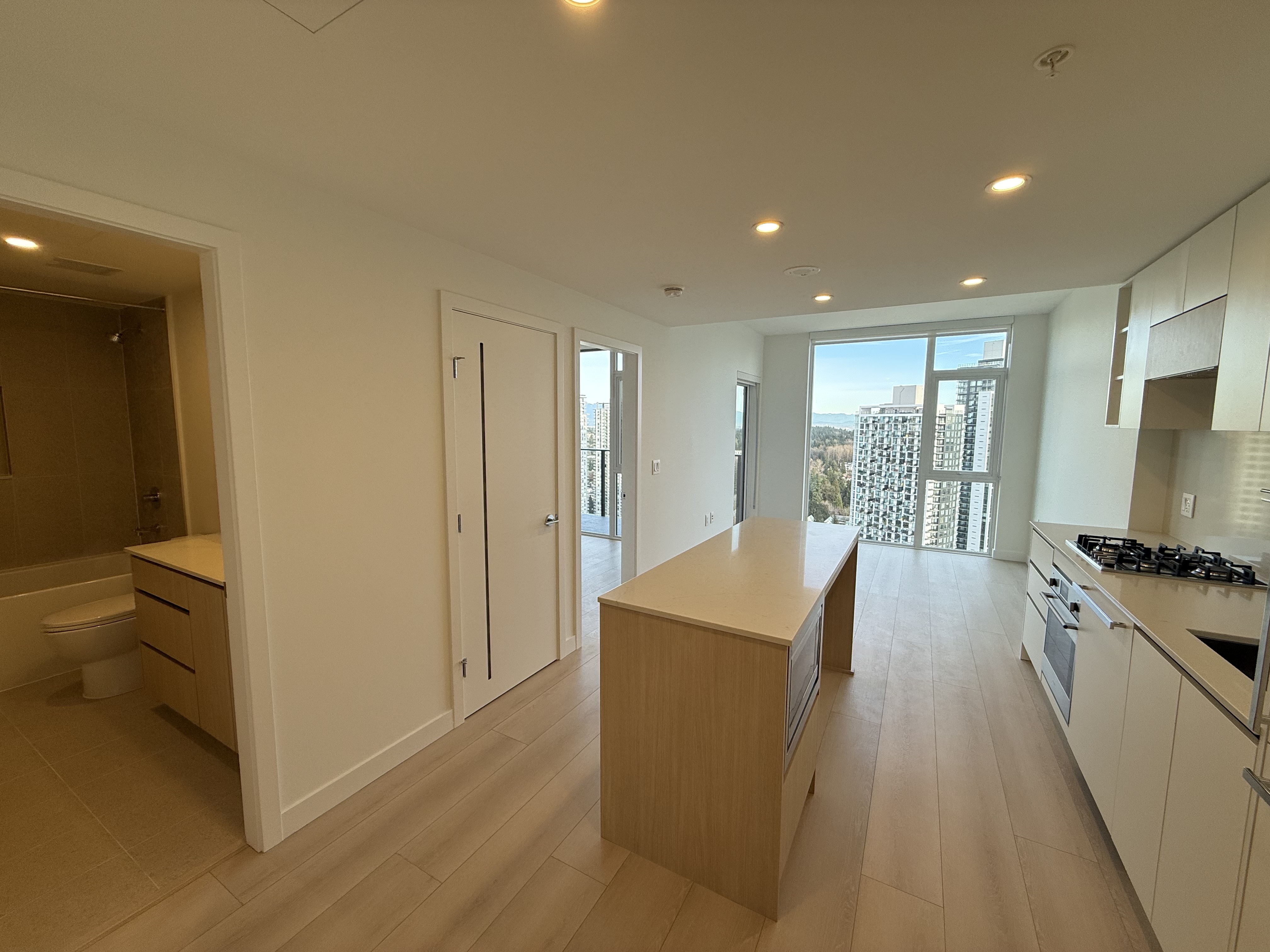 최근 완공된 써리 센트럴 지역의 방1, 화장실1, 신규 콘도 렌트 합니다.