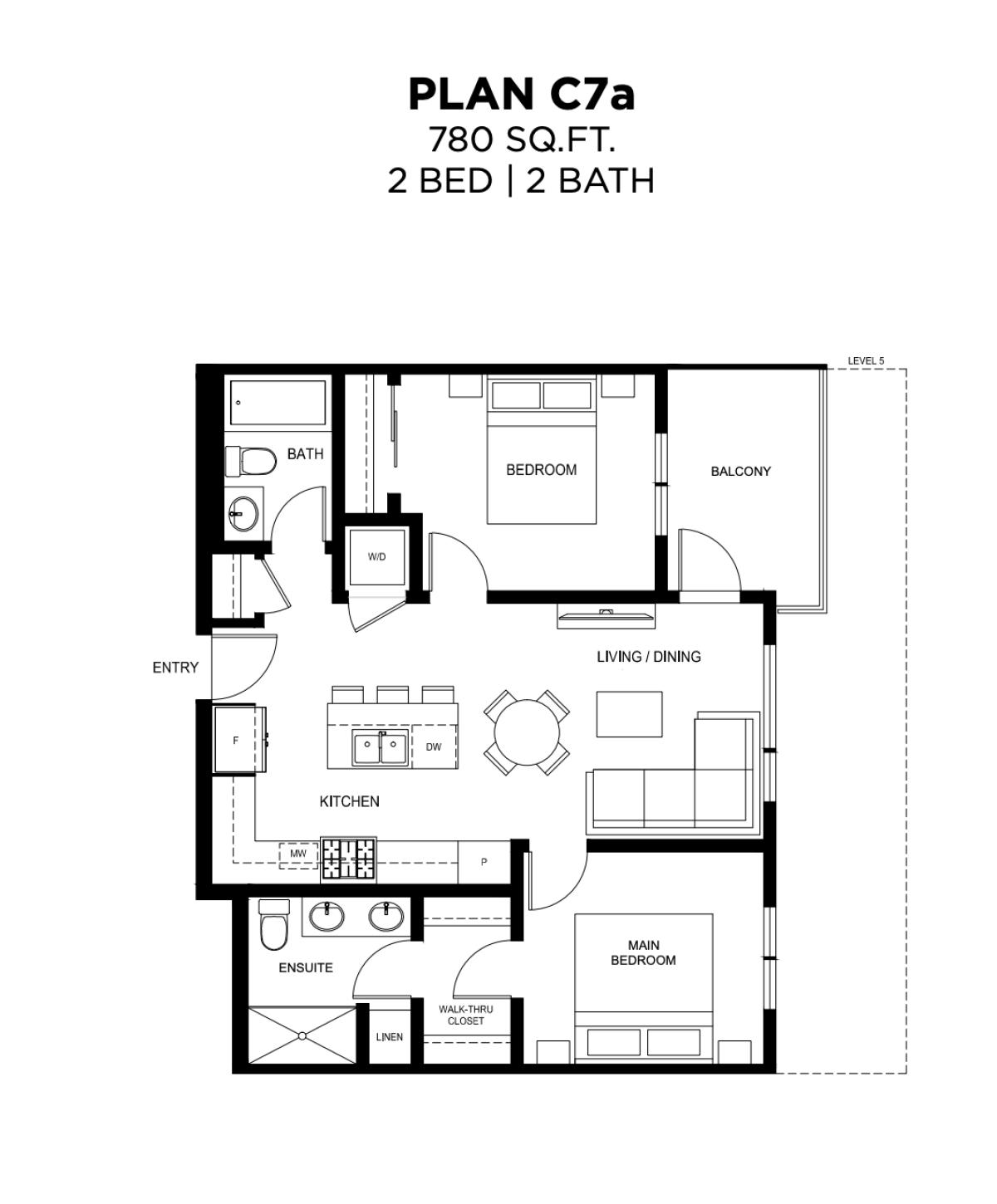 2026년 건축5층 2 Bed 2 Bath 780 Sq.ft 동향 유닛