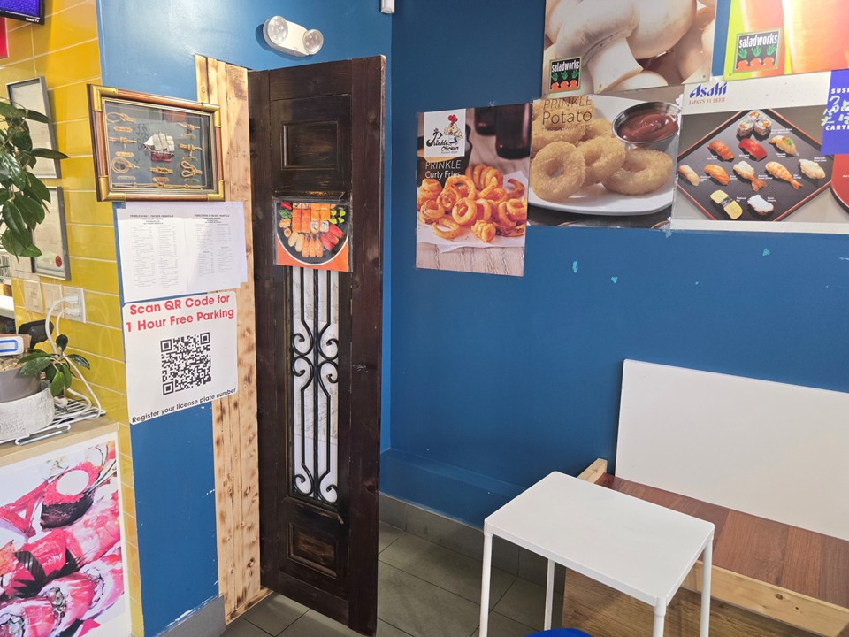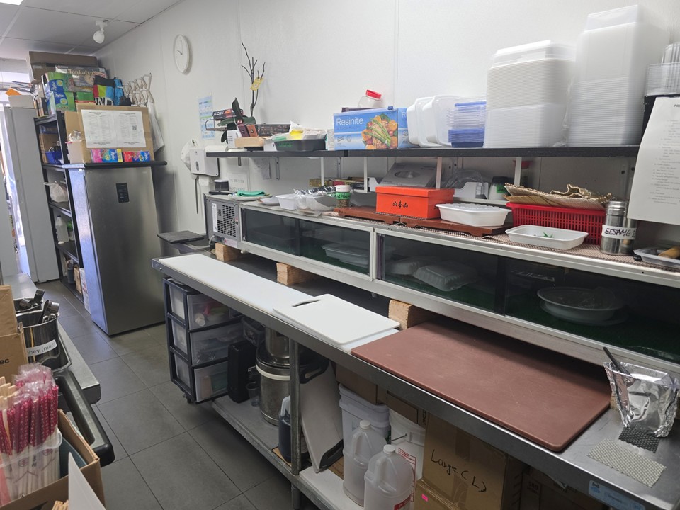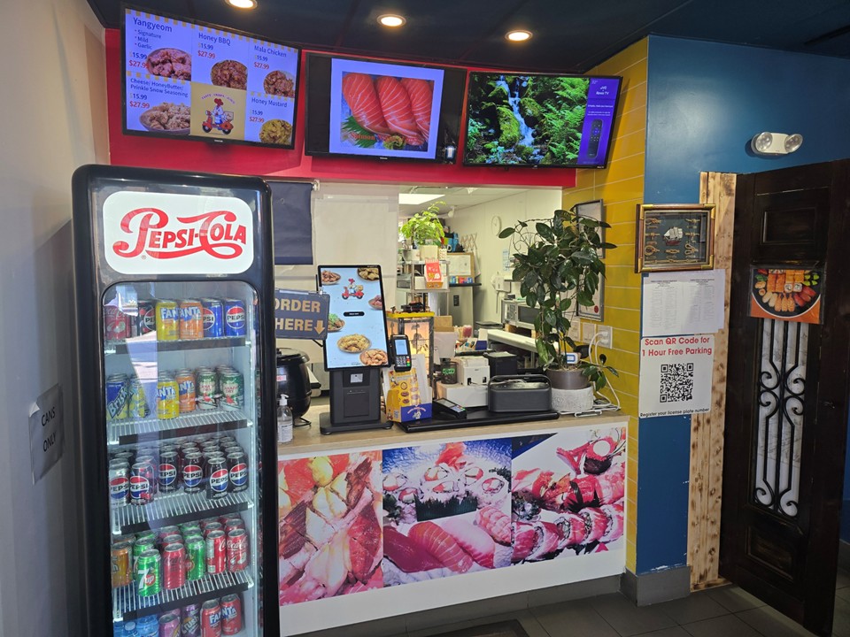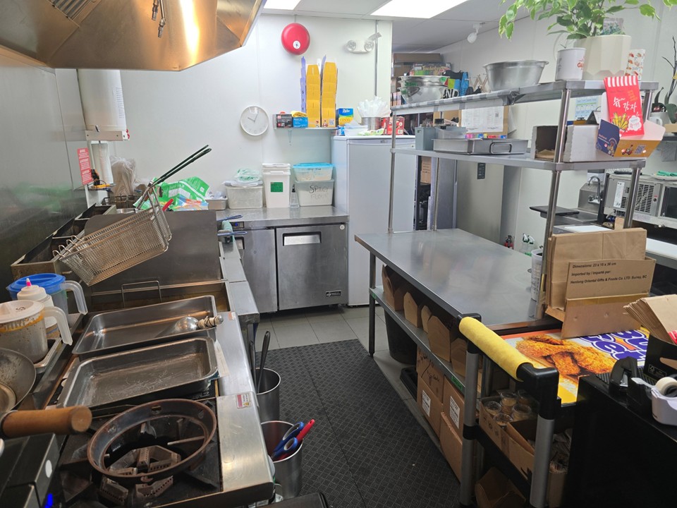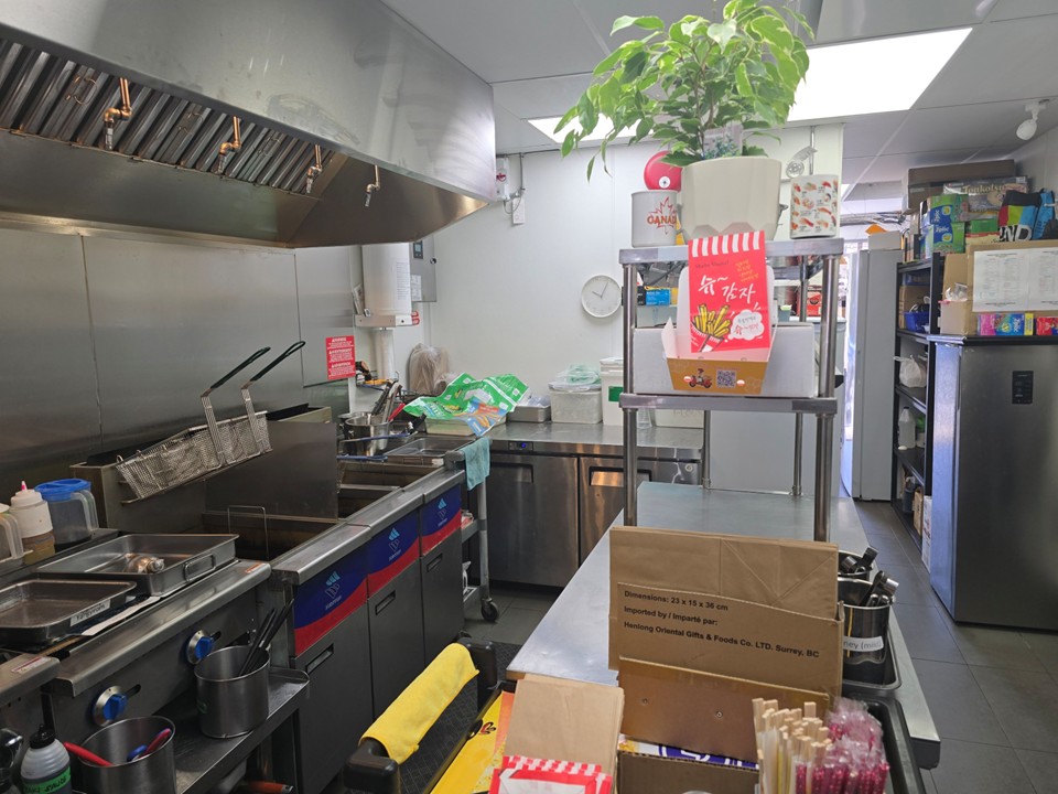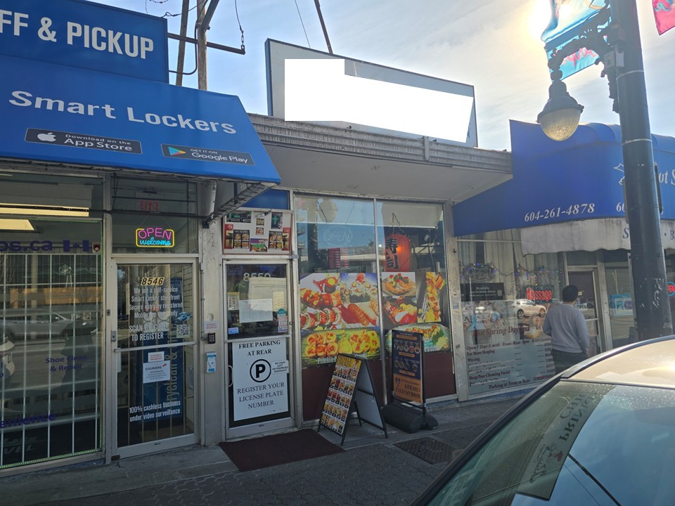 8피트 커머셜 후드 풀키친 with 7’ Refrigerated Sushi Case, 사람들이 붐비는 밴쿠버 지역, 저렴한 렌트비, 뒷편에 풍부한 주차시설, 매장내 10 좌석, 리스크 없이 투고 위주로 부담없이 처음 비즈니스를 시작해 볼려고 하시는 분께 적합