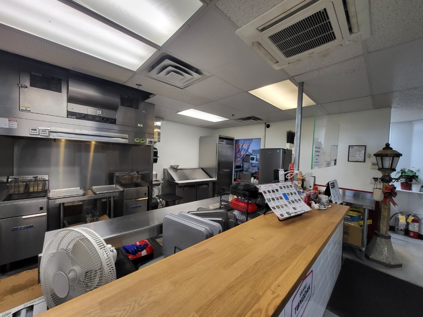 매장 면적은 약 986 sq ft로, 내부는 깔끔하게 관리되어 있고 6피트 벤트리스 후드와 소화 시스템, 거의 새것 수준의 주방 장비가 모두 갖춰져 있어 추가 투자 없이 바로 운영이 가능합니다.