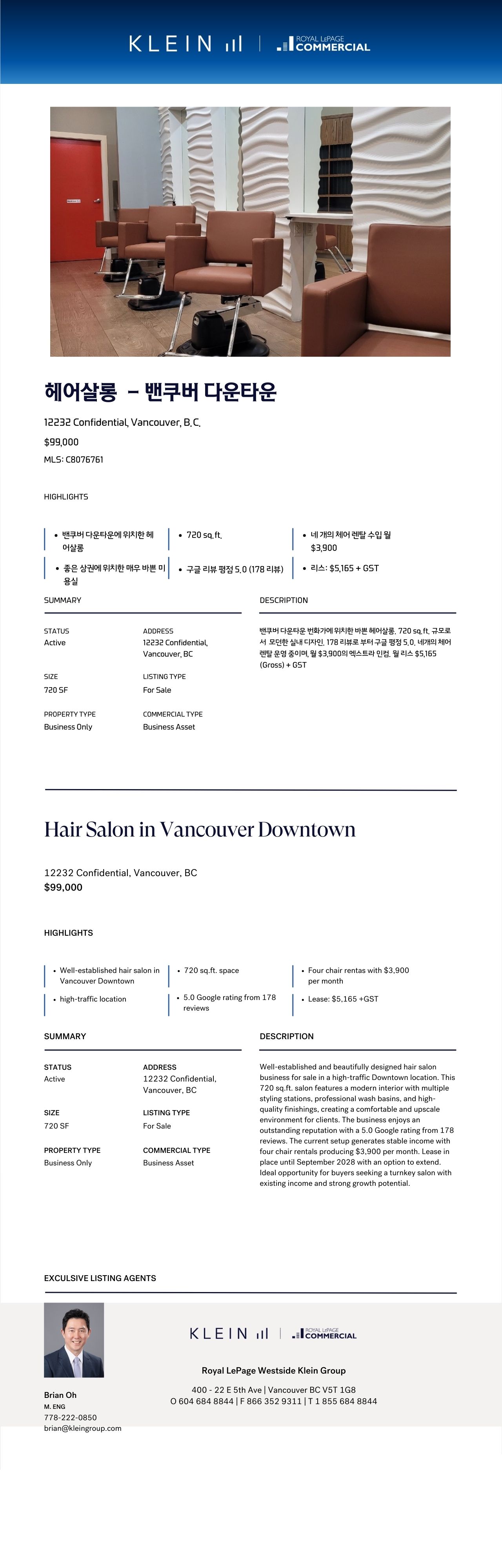 | 이메일 | brian@kleingroup.com | 입주일자 | - |