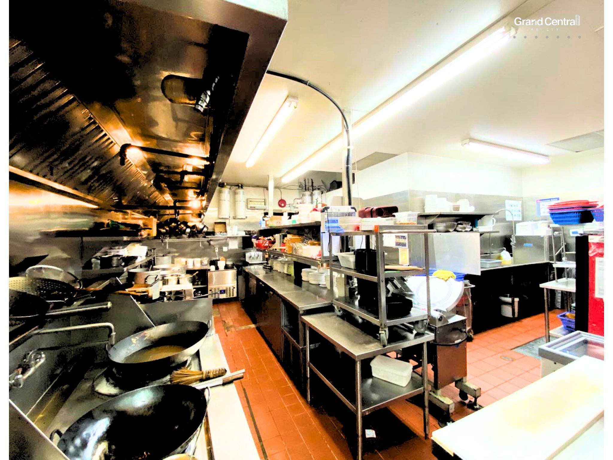 20FT 밴트와 워크인 쿨러를 보유한 풀 커머셜 키친.